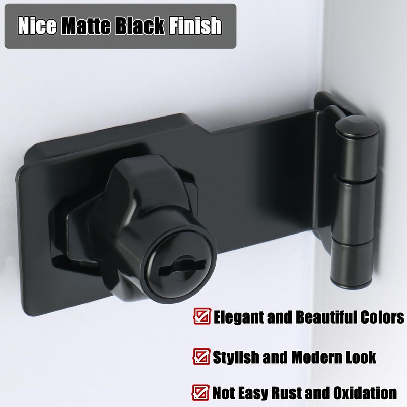 - 【Automatic Fast Security Lock】With automatic lock cylinder, lock hasp can be quickly locked by directly turning it 90°.The keyed hasp lock no padlock required,uses high quality lock core and comes with keys, which is simple but secure and eliminates the need for padlocks, offers reliable protection against intruders.