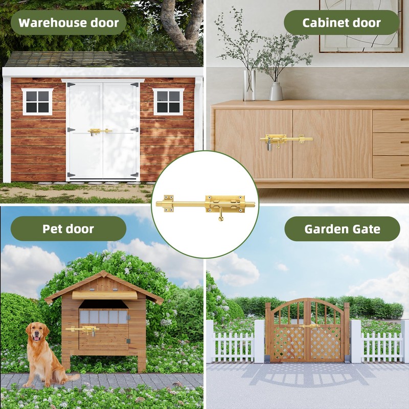 - 【Widely Used】Slide bolt latches have a wide range of uses, not only can be installed as gate bolts on a variety of doors, but also can be used to fix large clothes trunks and garage cubbards and other cabinets, cupboards and so on.