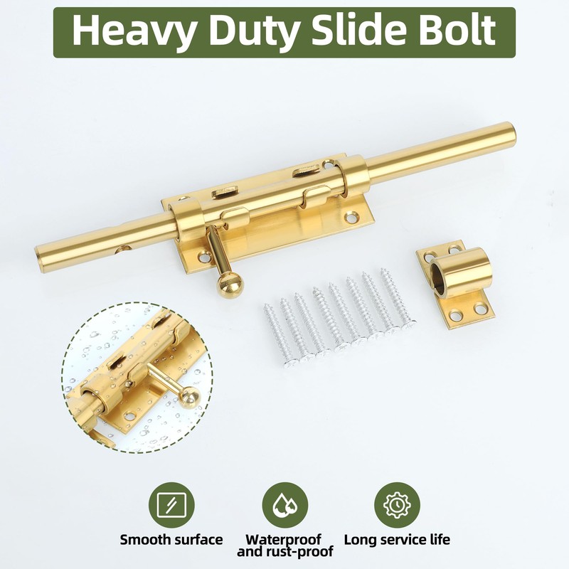 Alise Slide Lock SUS304 Stainless Steel Gate Latch, 10 Inch Slide Bolt Latch,Thickened Heavy Door Latch Lock, Black Barrel Bolt Latch, Security Slide Latch Lock Gold
