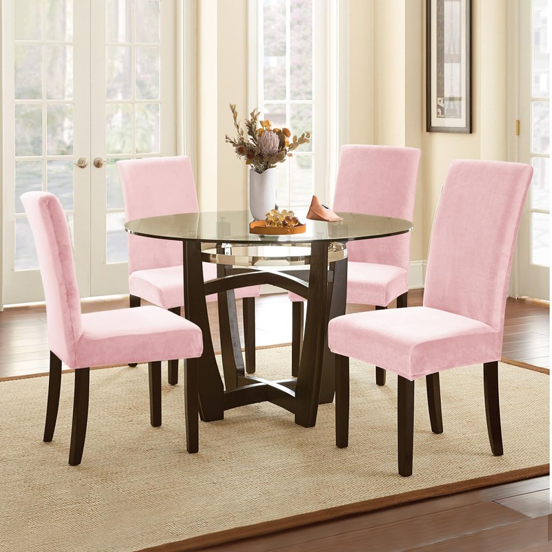 Alishomtll Dining Chair Covers Set of 4 Stretch Velvet Chair Covers for Dining Chairs Elastic Removable Chair Slipcovers Reusable Washable Chair Protector for Hotel Banquet Ceremony (Pink, 4pcs)