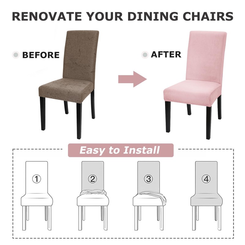 - ✅ REFRESH & PROTECT YOUR CHAIRS: Alishomtll velvet dining chair slipcovers will refresh your old chairs in no time and fully protect your new chairs. Keeps the chair free from scratches and stains, prevents scratches and tears from pets and extends the life of the chair. A good choice for families with children and pets.