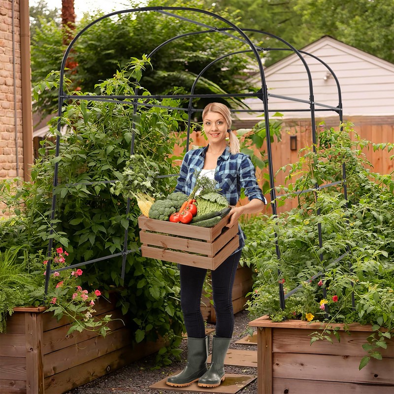• Versatile Arch Trellis: Perfect for cultivating hanging fruits like grapes, cucumbers, melons, and gourds, as well as decorative climbing plants like vines or roses. It's especially effective for guiding pumpkins and squash upwards, creating a picturesque archway for climbers, and keeping winter squash elevated off the ground