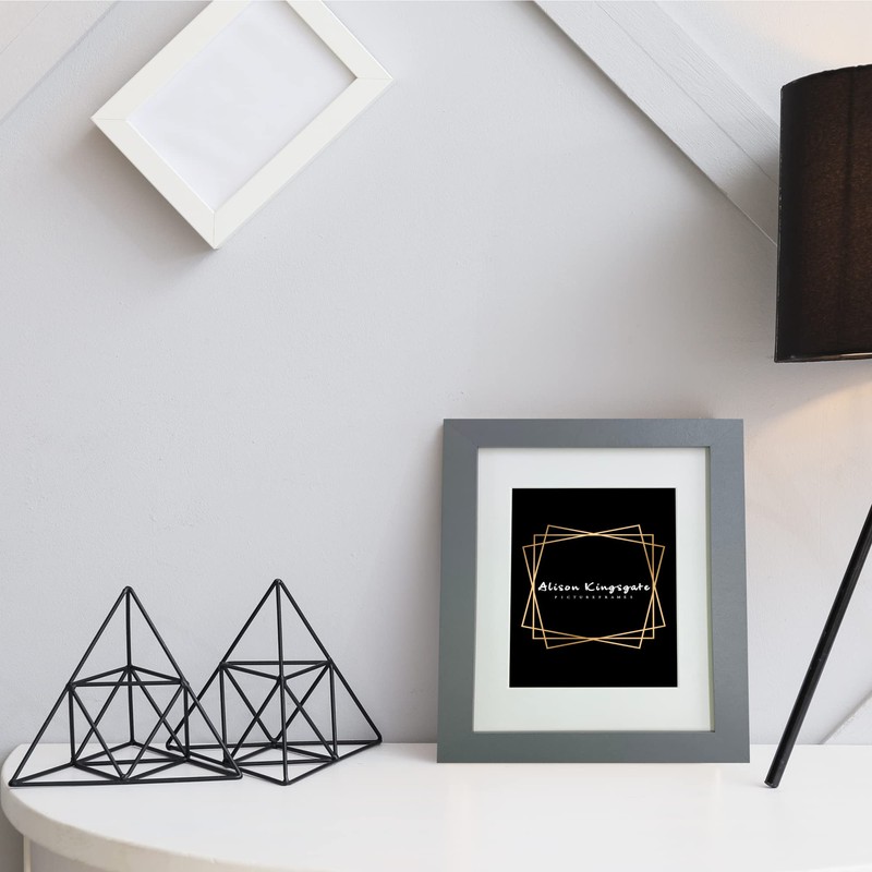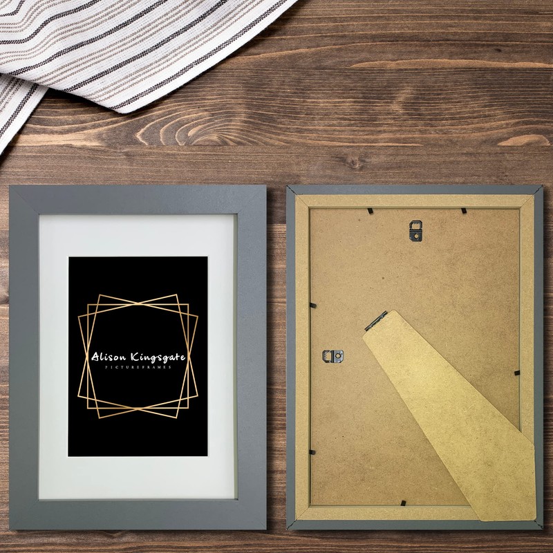 Alison Kingsgate Grey A4 Picture Frames With Mount For A5 Image Size, A4 Certificate With Clear Perspex Sheet & Wall Mounted, Hook to Hang Portrait or Landscape (Dark Grey)