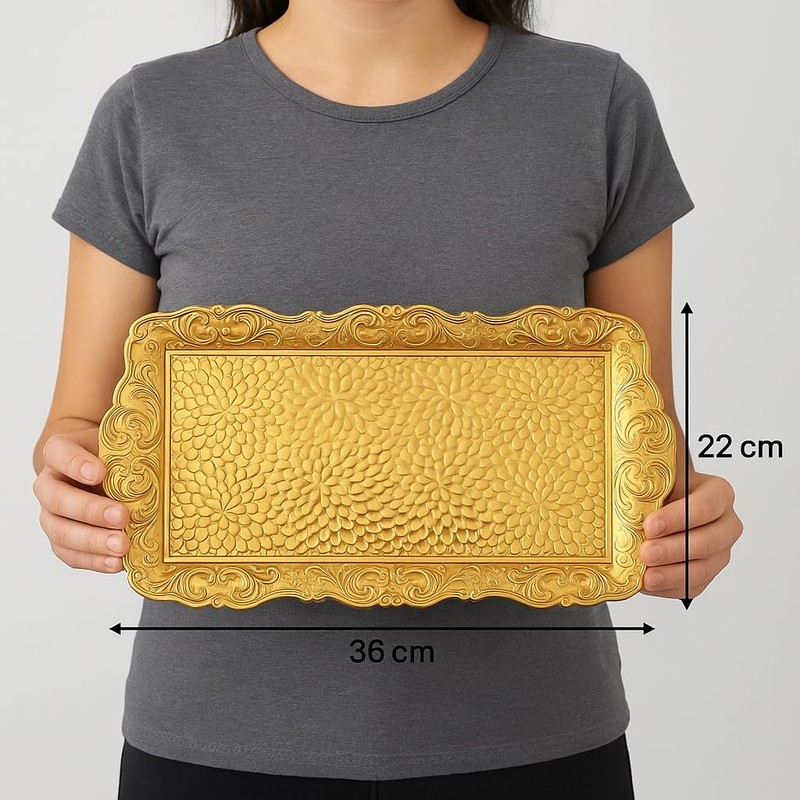 Alisveristime Set of 2 Ornate Metal Serving Trays – Ottoman Motif Decorative Sheet Metal Trays, (14.2" x 7.1", 10.8 oz) (Gold)