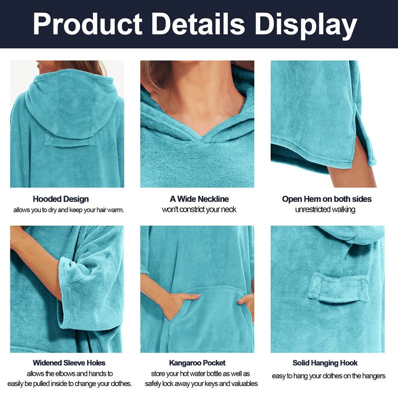 - Unisex Adults Hooded Towel: Changing robe towel poncho with hood, it is can help keep hair warm after blow-drying, this bath towel is sandproof and slightly waterproof, water drops will not absorb dryness quickly, please towel or wet clothes dry your body before putting it on.