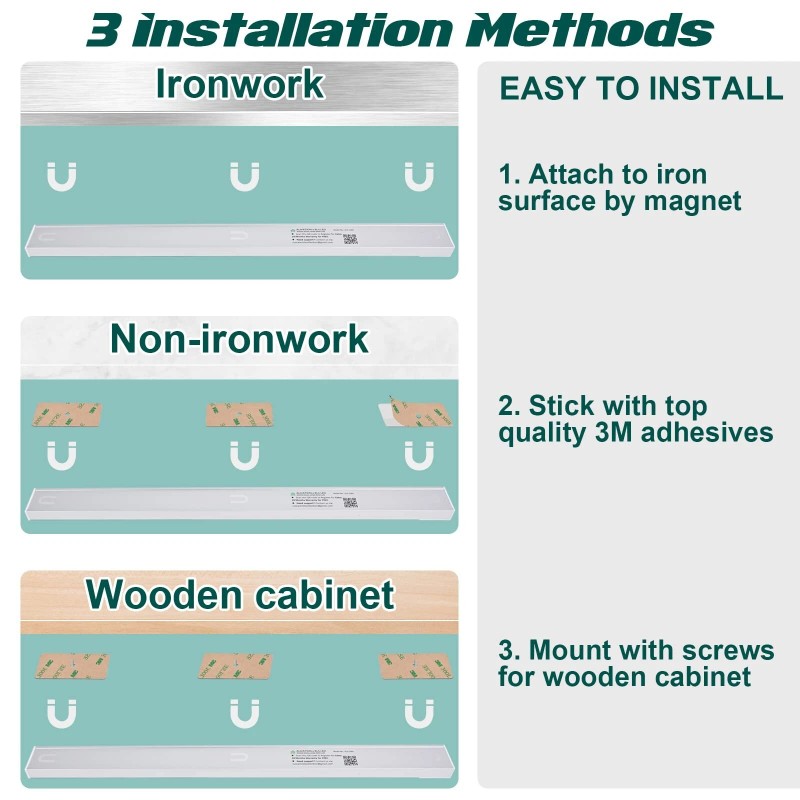 - CORDLESS INSTALLATION:The motion light has built-in strong magnet, installation takes a few seconds with the provided 3M Sticker. Easily attached to and detachable from the magnet plate for charging. Premium quality 3M adhesives stick firmly, will not damage your furniture. This LED light can be also be attached to any iron surface, eg. Refrigerator, shelf, storage rack, etc. No wires, tools, screws or nuts are required.