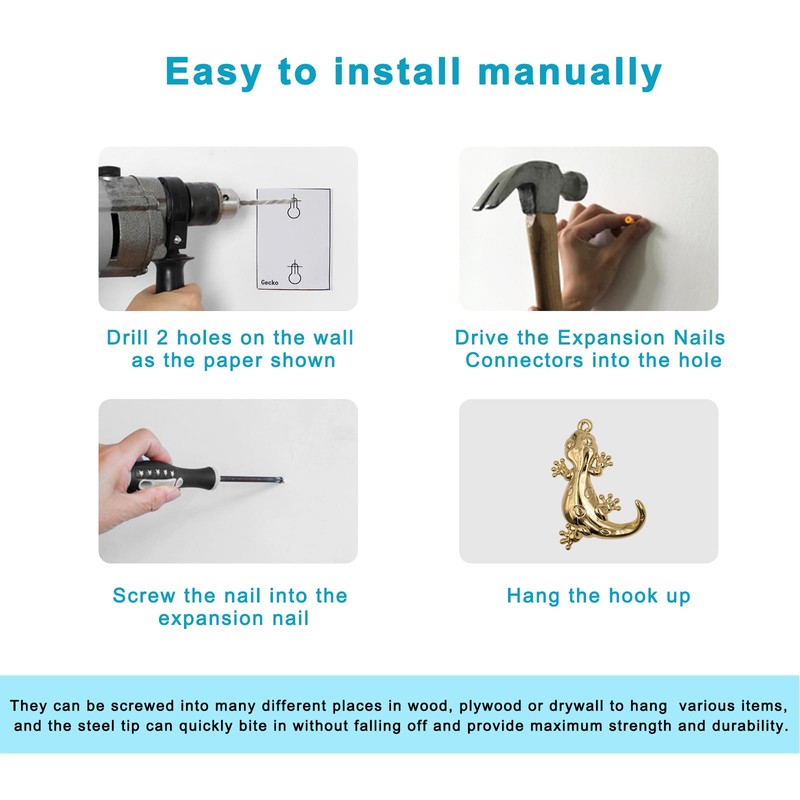 - Gold Gecko Style Hooks--These impressive gecko style wall mounted metal coat hooks are durable, functional and decorative.Beautiful in any nautical themed home.