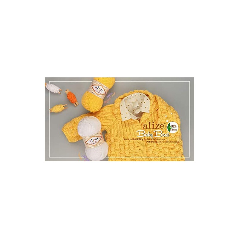 - Alize Baby Best is a beautiful knitting yarn with anti-pilling effect. This effect ensures that the knitted fabric does not produce lint (knots) even after heavy use. Thanks to its intelligent blend of polyacrylic and viscose, the yarn is not only ideal for knitting, but also a good choice for crocheting. With its wide range of colours, you can knit dreamy and cuddly baby things.