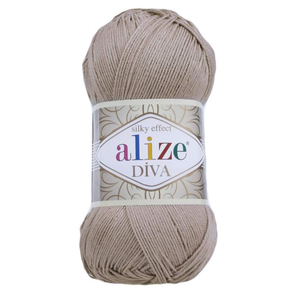 Alize Diva Silk Effect 100 % microfibra acrílica, 1 madeja de bola, 100 g, 383 yardas de color (167 - beige)