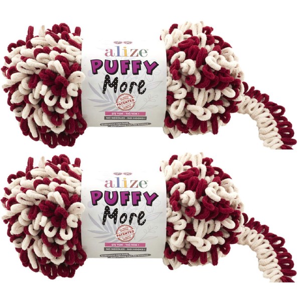 - ✅ 2 Skeins Alize Puffy More Yarn 25 yards 2x150gram