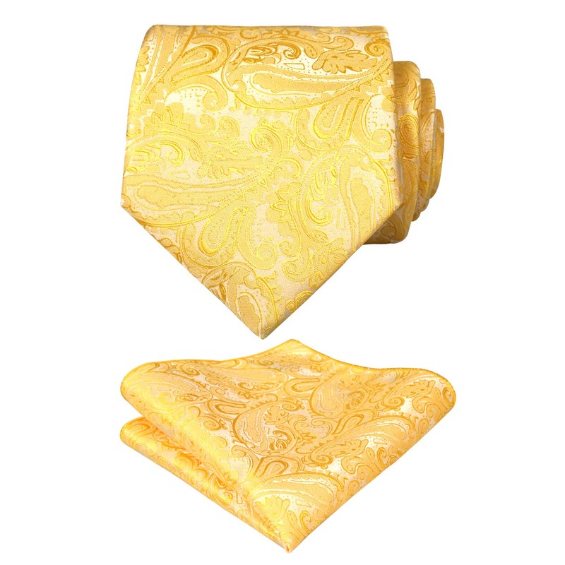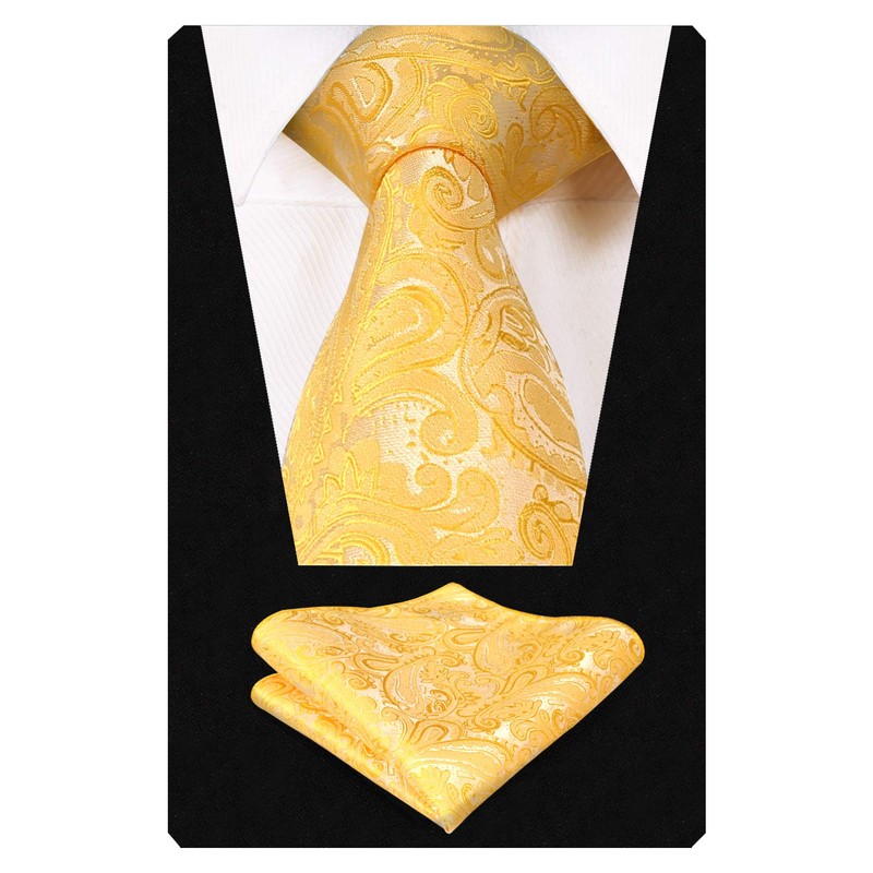 Alizeal Handmade Paisley Floral Tie with Pocket Square Set (174-Yellow, One S...