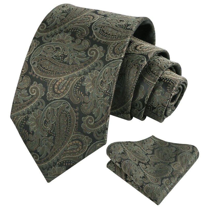 Alizeal Handmade Paisley Floral Tie with Pocket Square Set, Olive Green