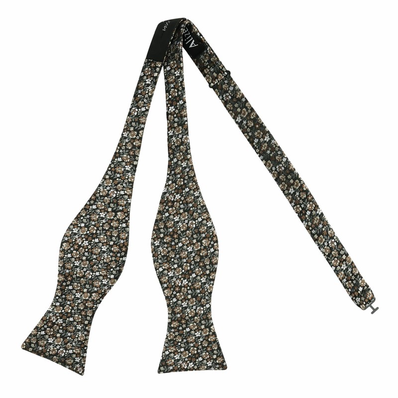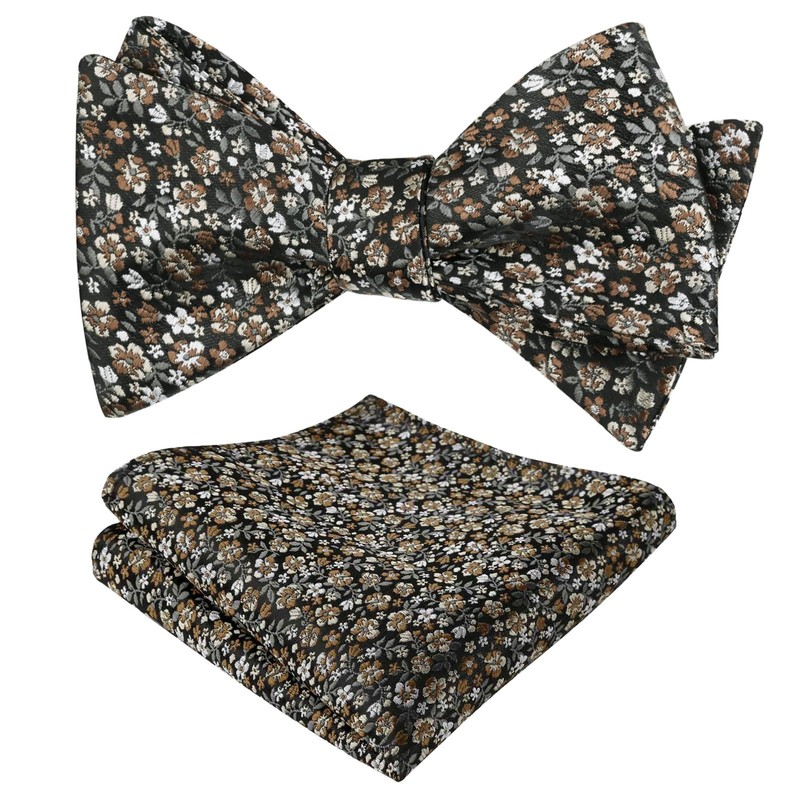 Alizeal Mens 2pcs Floral Pattern Self-tied Bow Tie with Pocket Square Colorful Tie Set, Brown+White+Gray