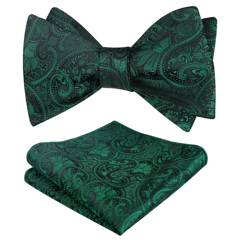 Alizeal Mens 2pcs Paisley Jacquard Tuxedo Self Bow Tie with Hanky Set for Wedding Party, Dark Green