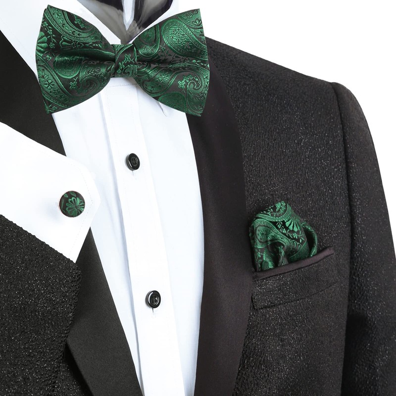 Alizeal Mens Gradient Paisley Bow Tie Pre Tied Pocket Square Cufflinks Set, 028-Dark Green