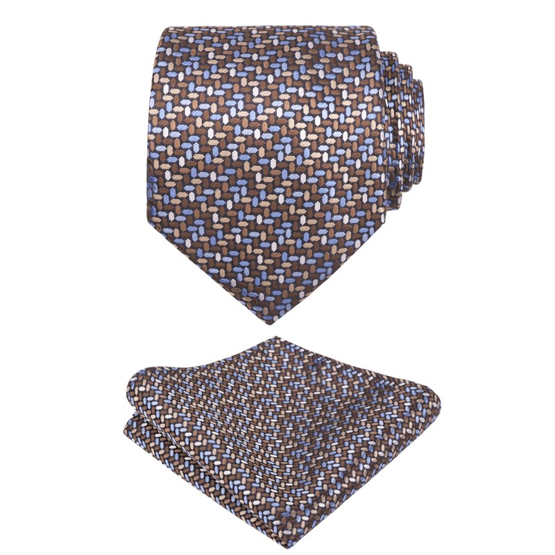 Alizeal Mens Tie & Pocket Square Unique Classic Business Wedding Tie Set, 149-coffee+blue