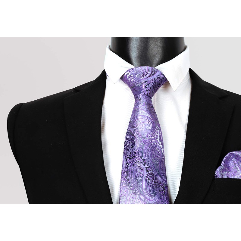 Alizeal Paisley Men's Tie and Pocket Square Sets (59" Length x 3.5" Width, Lilac)