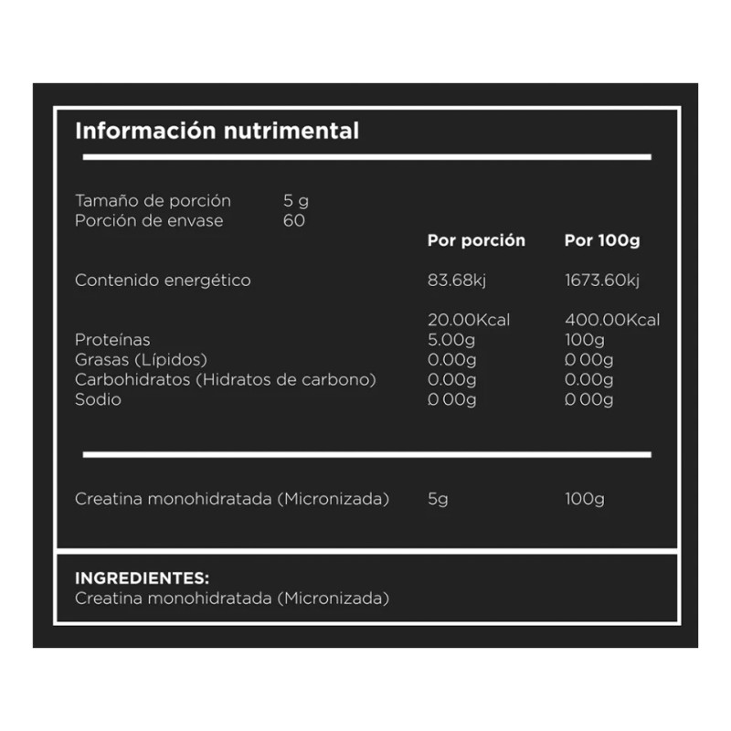 Alto nivel de asimilación en su forma de Creatina Monohidratada Micronizada de Alta Pureza.