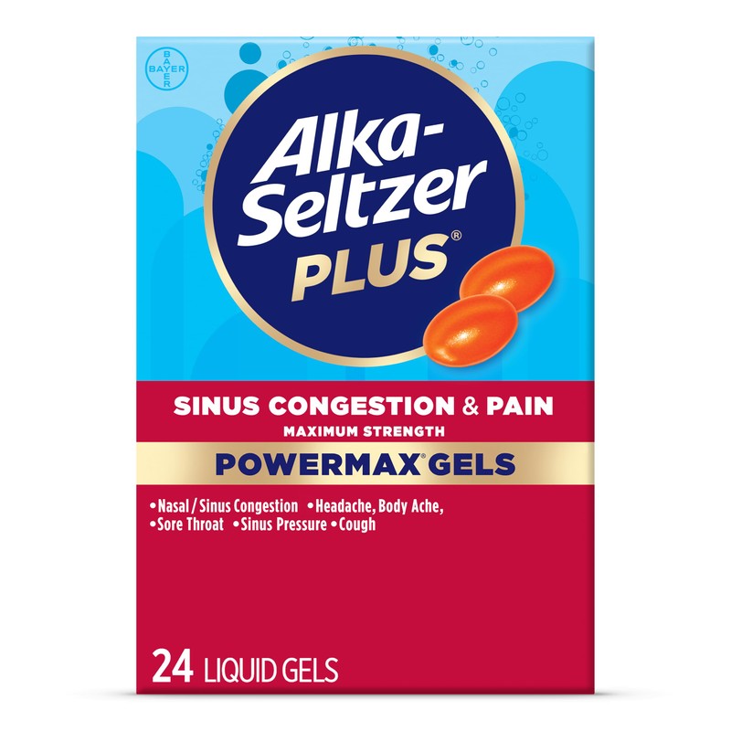 - New 25% smaller pill: Alka-Seltzer Plus Maximum Strength Sinus Congestion and Pain relieving Powermax gels have a concentrated formula to provide powerful fast relief