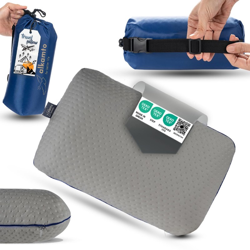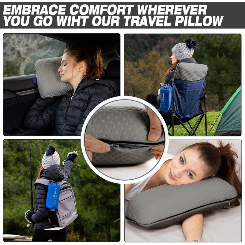 alkamto alkamto Travel & Camping Comfortable Memory Foam Pillow C Easy to Carry Portable Bag C Temperature Regulating Pillow Case (Grey)