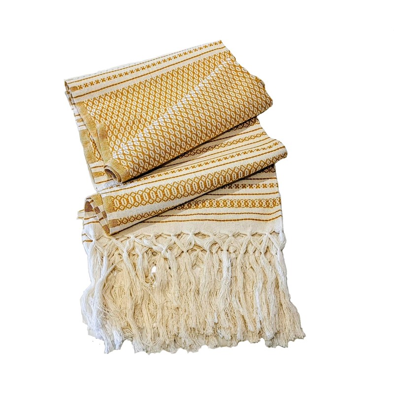 ALKIMIA INC Mexican Handmade Cotton Dotted Rebozo Shawl, Honey, Large