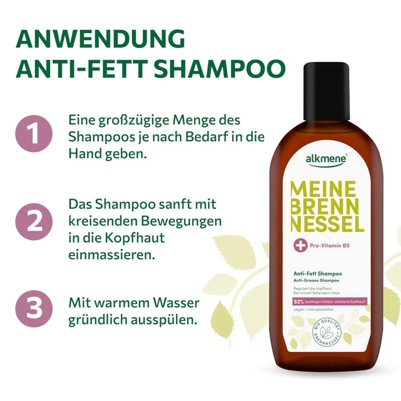 - Anti-fat shampoo – the revitalising formula with the unique active combination of nettle and pro-vitamin B5 gently cleanses the hair, regulates the scalp and prevents quick re-greasing