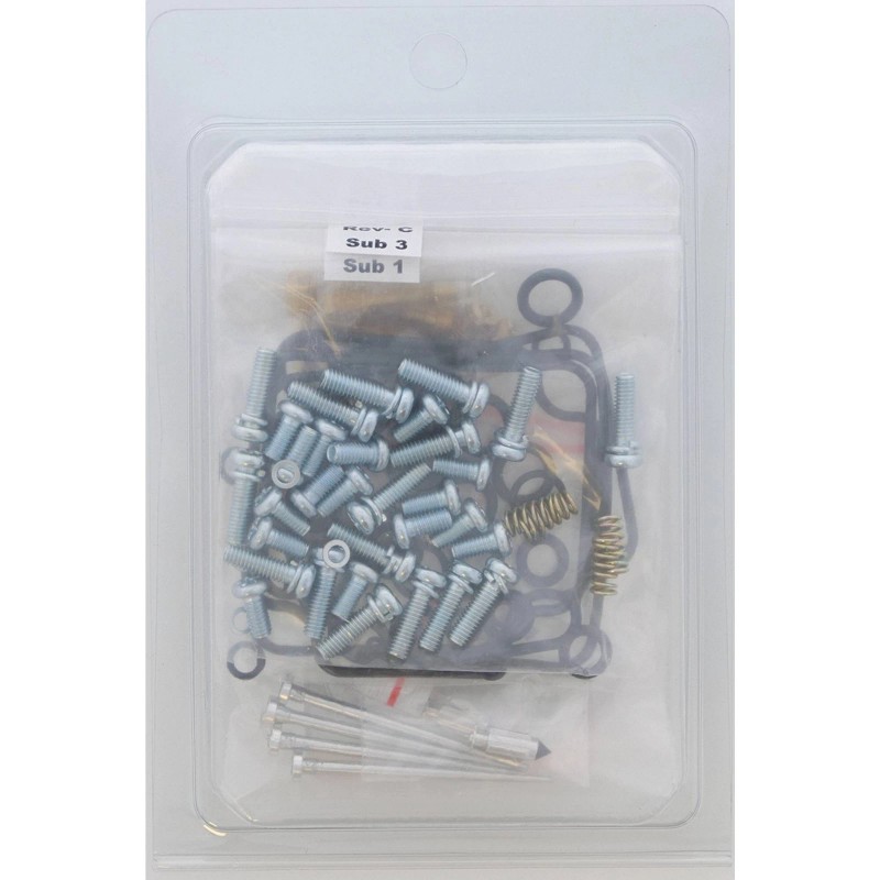 Kit includes necessary all O-rings, gaskets, jets, needle, mixture screw, float bowl screws, float valve needle and seat. (Needle jet and other pressed in jets are not included in kit.) |
