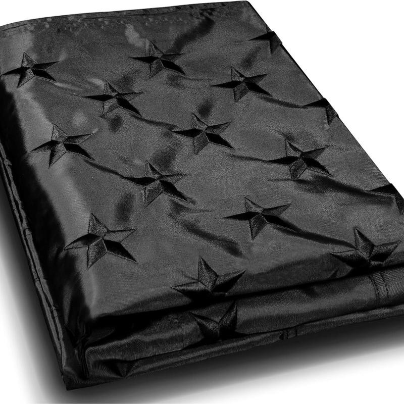 Premium Quality All Black American Flag, Durable 300D Heavy-weight Nylon for all weather outside. Light Flyability with Reinforced Polyester header for tough extra strength. Heavy Duty Brass Grommets and Quadruple Stitched Fly Hem.