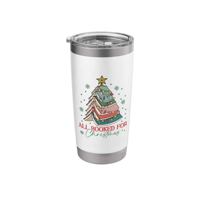 All Booked For Christmas Book Lovers Christmas Tree Lights Stainless Steel Insulated Tumbler