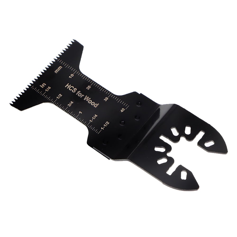 Wood/Soft-Metal Oscillating Saw Blade: Ideal for flush cuts and cut-outs in hard materials and non-ferrous metals (light gague; low iron content) and materials such as hardwoods, plywood and particle board this blade can also tackle materials such as plastics, fiberglass and Plexiglas. Manufactured with a durable cutting edge that resists wear and cuts quickly. Designed to saw into corners and cut angles with precision the blade can be utilized for even the toughest tasks. The design allows the blade to be used in multiple projects, trimming base boards and door jambs when installing new flooring is easy with this Blade universal cutting blade.