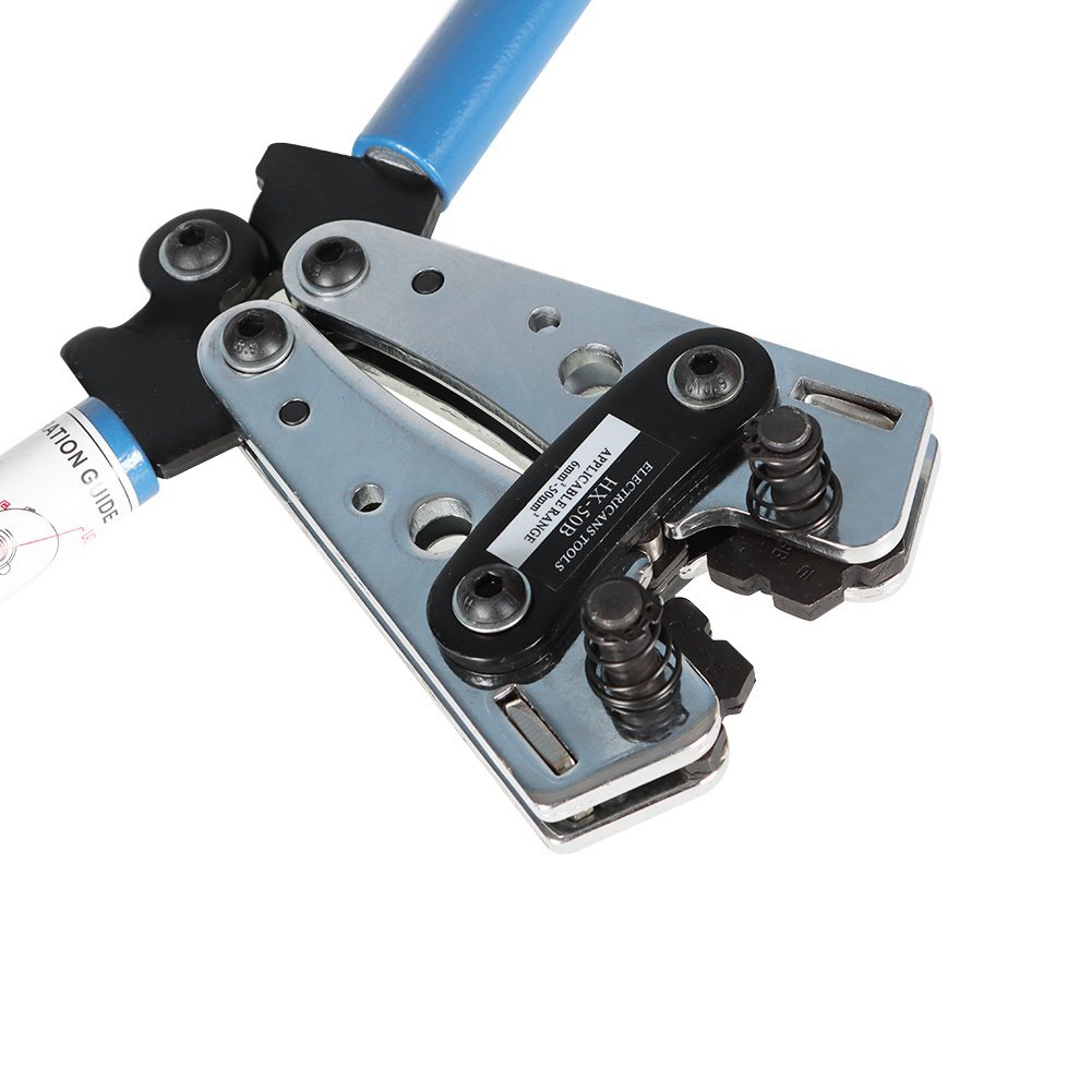 The long handle of the wire crimper is 10 inch and wrapped with soft rubber, ergonomic lever structure design can increase friction and help you use less effort when crimping.