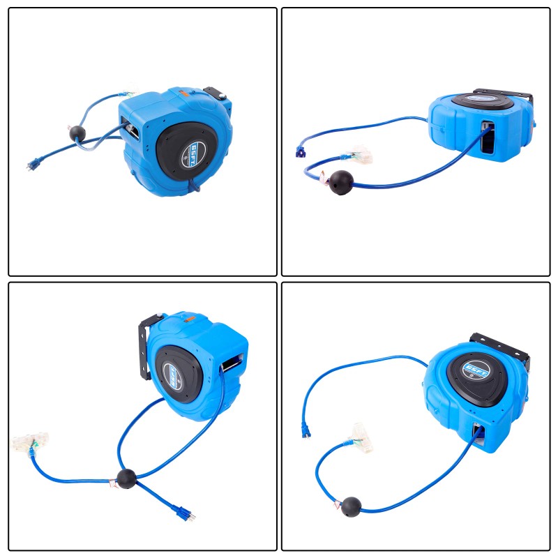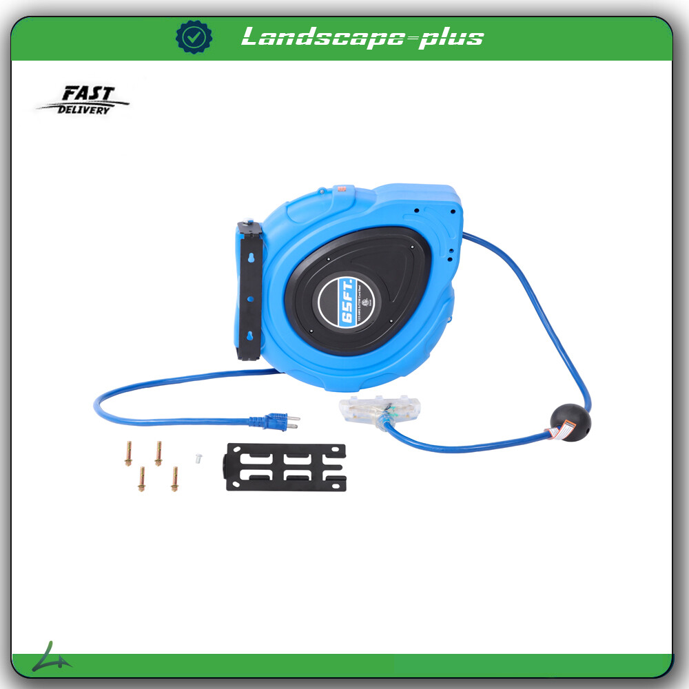 Product Function Description: Our retractable extension cord reel features a 65 ft extension cord,Adopting flame-retardant and tangle-resistant 12AWG cable, it brings you ultimate convenience! Power up your devices anywhere! When the total current of the connected device exceeds the rated value, the built-in circuit breaker automatically cuts off the power supply to keep the device and operator secure. Built with premium cable, our retractable extension cord reel offers unbeatable outdoor protection and durability. Perfect for any tough environment, it ensures your power stays reliable wherever you go. The retractable extension cord reel installs effortlessly in spaces like your garage. With smooth extending and automatic retracting, it's a breeze to lock in place for tidy storage. Easily mount our retractable cord reel to your wall or ceiling with the bracket, detailed instructions, and screws. Note: No screws are needed for wall mounting, but they are required for ceiling installation, so make sure to position the screws correctly to avoid the reel falling off. This product has undergone rigorous quality testing. Durable and easy to install and replace. The most cost-effective and best after-sales service. Quality assurance that gives you peace of mind.