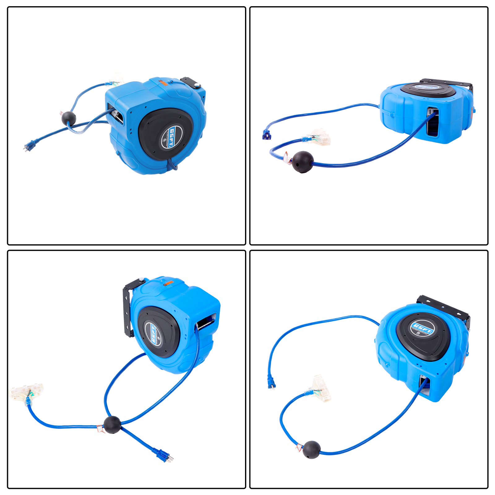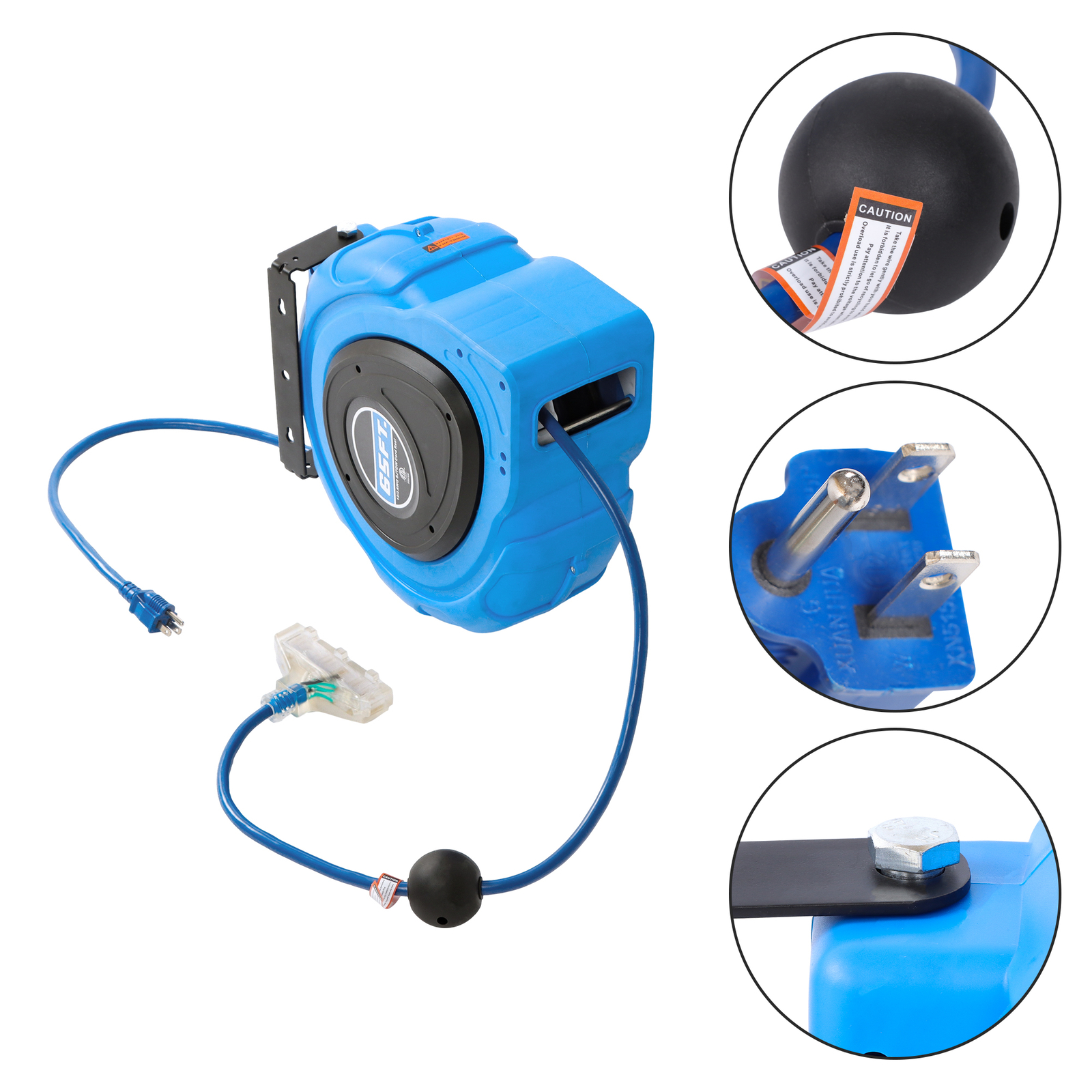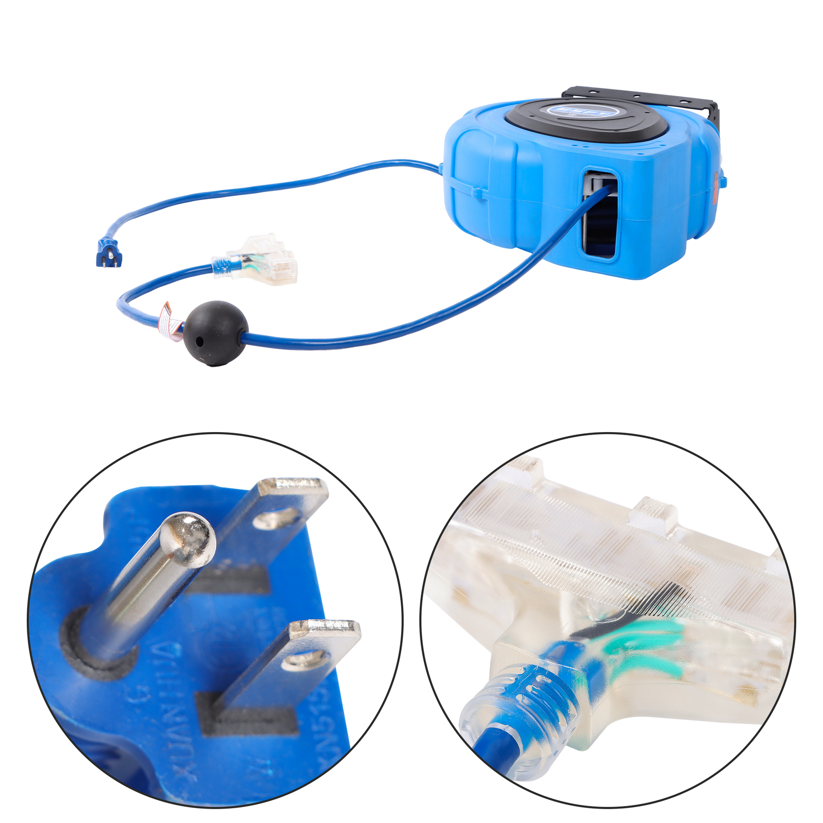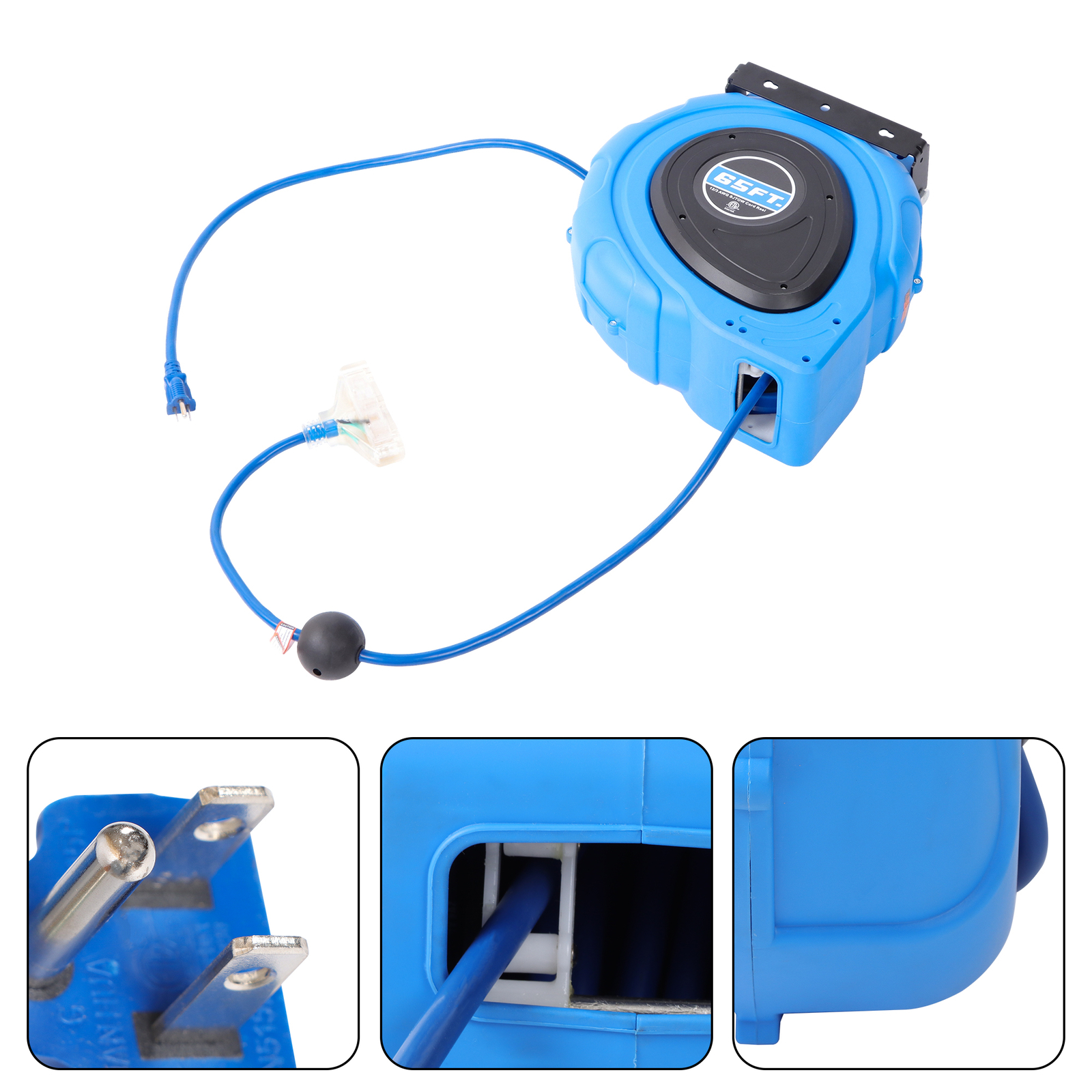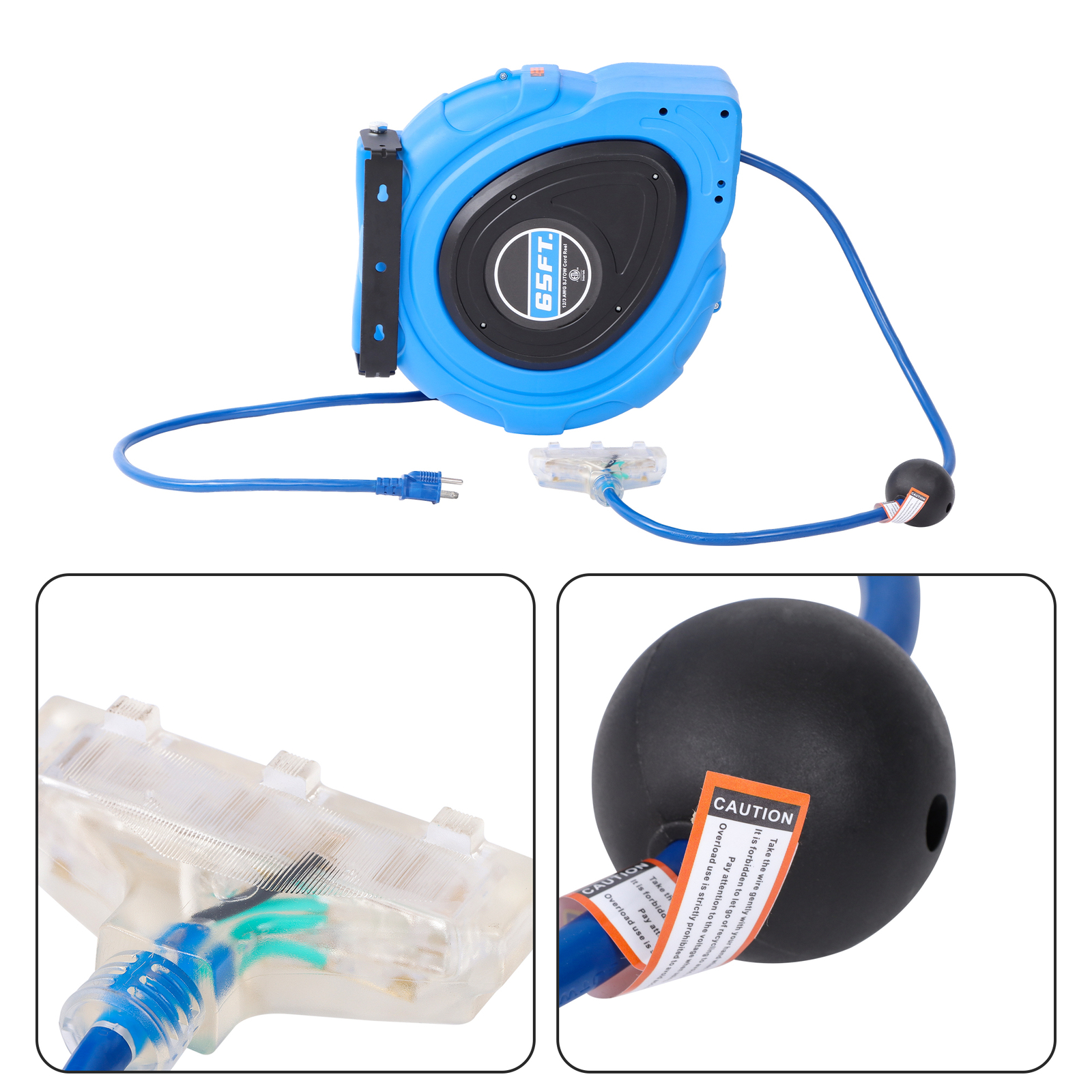 Retractable Extension Cord Reel Power Cord Reel 65FT 12AWG Blue