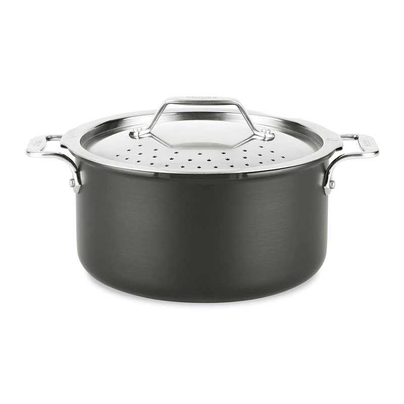 All-Clad HA1 Hard Anodized Nonstick Stockpot, Multi-Pot with Strainer 6 Quart Oven Broiler Safe 500F Strainer, Pasta Strainer with Handle, Pots and Pans Black