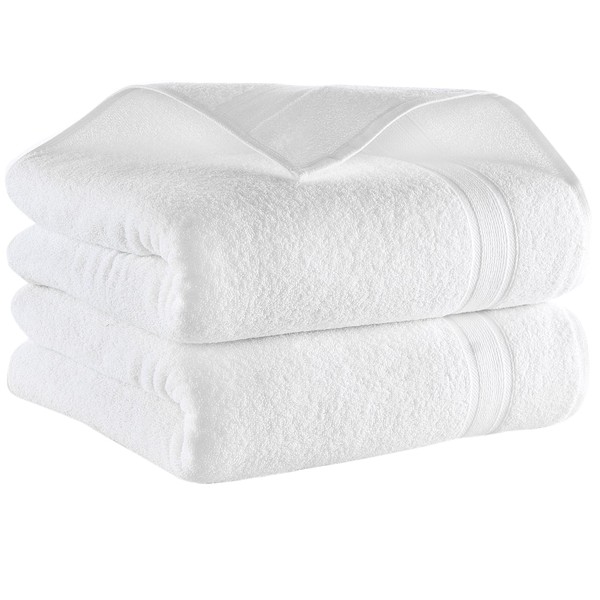 All Design Towels - Jumbo Bath Sheet 2 Piece - 100% Ring Spun Cotton Highly Absorbent and Quick Dry Extra Large Bath Towel - Super Soft Quality Towel (35 x 70 Inches, White)