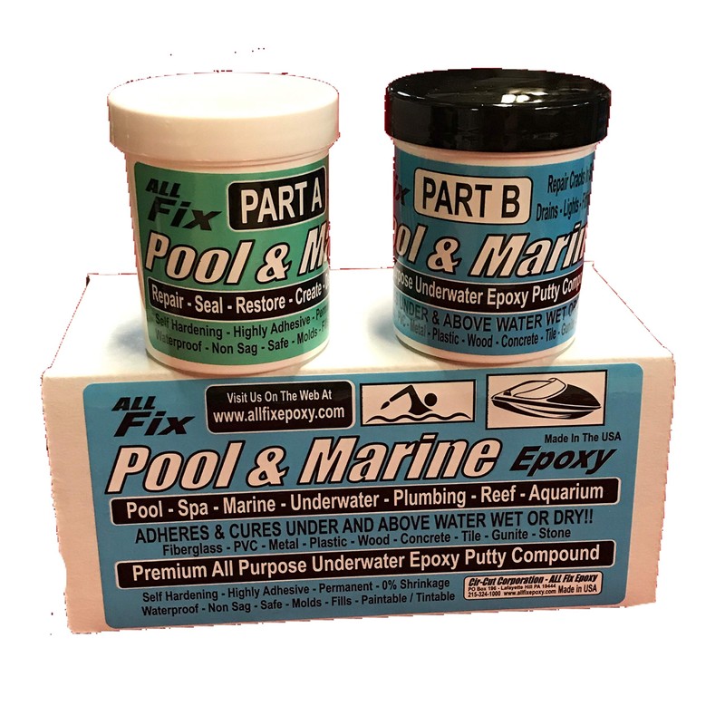 - All-Fix will adhere to just about any surface or material: Concrete, Tile, Plastic, Gunite, Wood, Ceramic, Metal, Stone...and just about any other material!