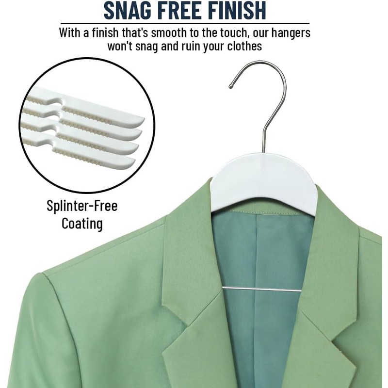 - STRONG AND SMOOTH. Our high quality hangers have a smooth anti snag finish, and are lightweight and durable. You won't need to buy other hangers after purchasing ours