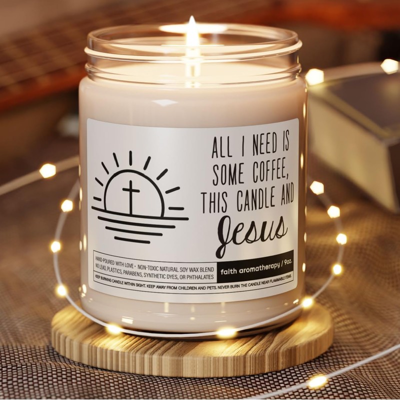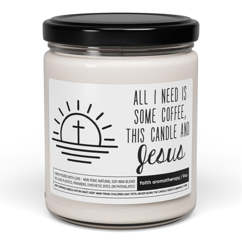 All I Need is Coffee and Jesus Candle - Christmas Gift for Sisters who love coffee & Jesus, Bible Verse Candle for Christians, Presents for Believers20 (Coconut Cream + Cardamom)