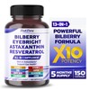 All-in-1 Bilberry 10,000mg Eyebright Astaxanthin Elderberry Resveratrol Supplement - Rich in Antioxidants & Supports Eye Health - Made in the USA -150 Capsules