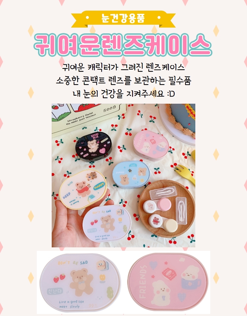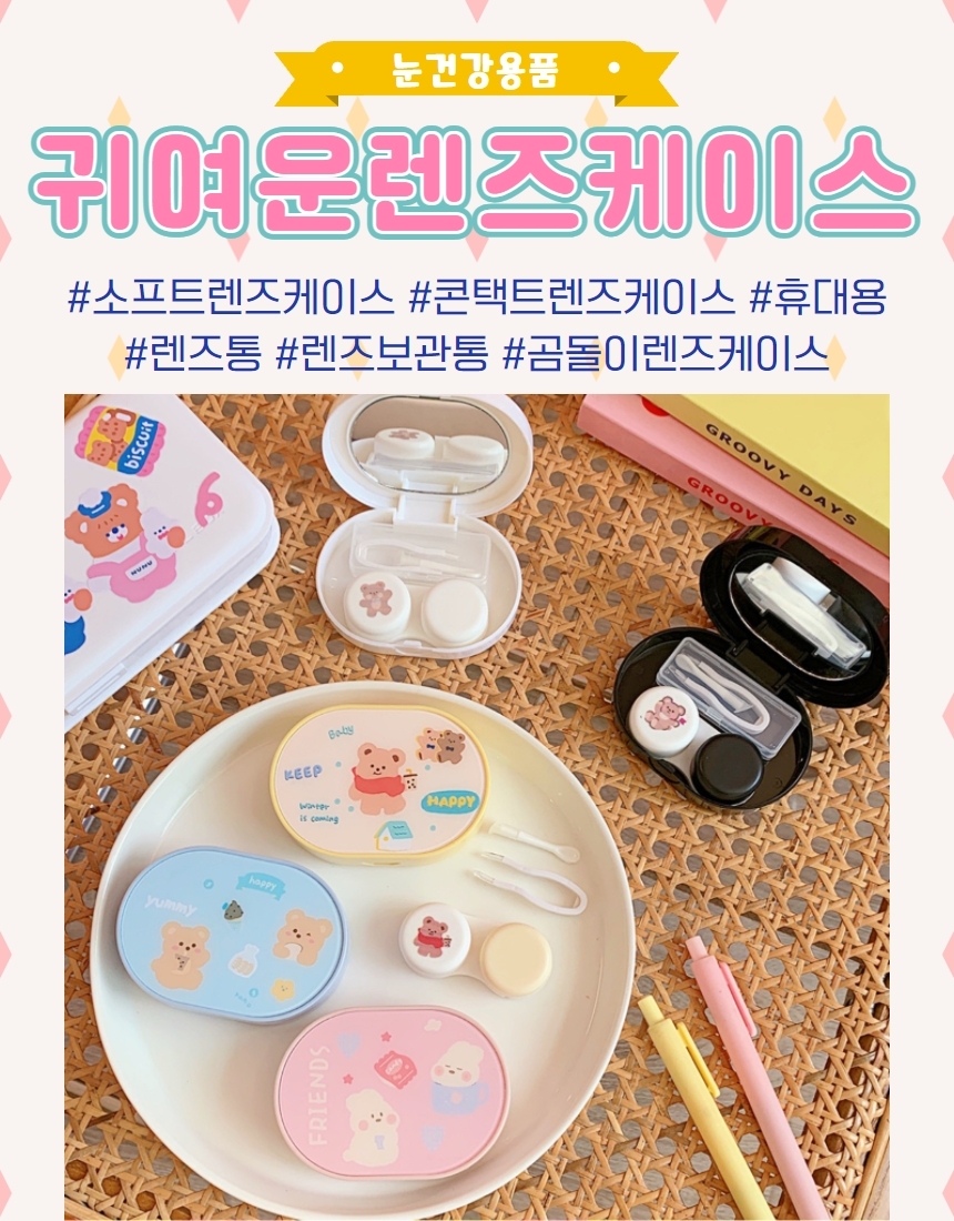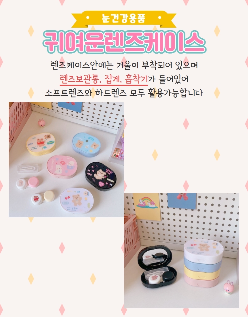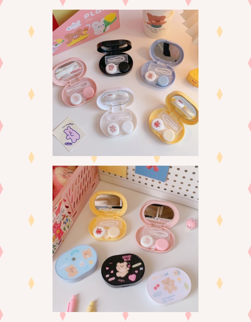 일체형 휴대용 귀여운 곰돌이 소프트 콘택트 렌즈 보관 케이스 렌즈함 보관함 하드 랜즈 보관통 All-in-One Portable Cute Bear Soft Contact Lens Storage Case Hard Lens Container
