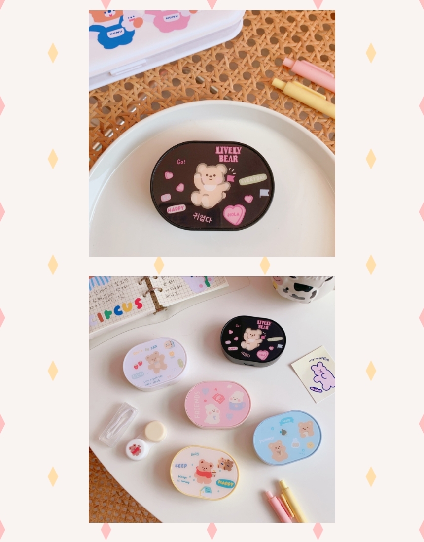 일체형 휴대용 귀여운 곰돌이 소프트 콘택트 렌즈 보관 케이스