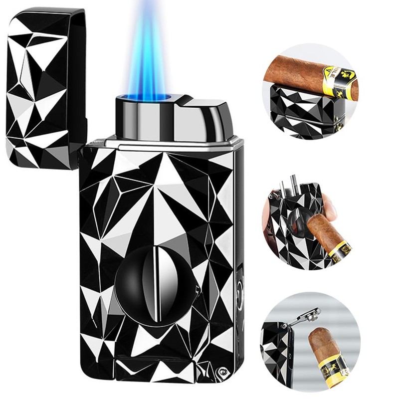 - All in One - Our multifunctional lighter perfectly combines a torch lighter, v cutter, punch and holder, achieving an all-in-one integration. providing you with unrivalled convenience without the need to carry additional accessories.
