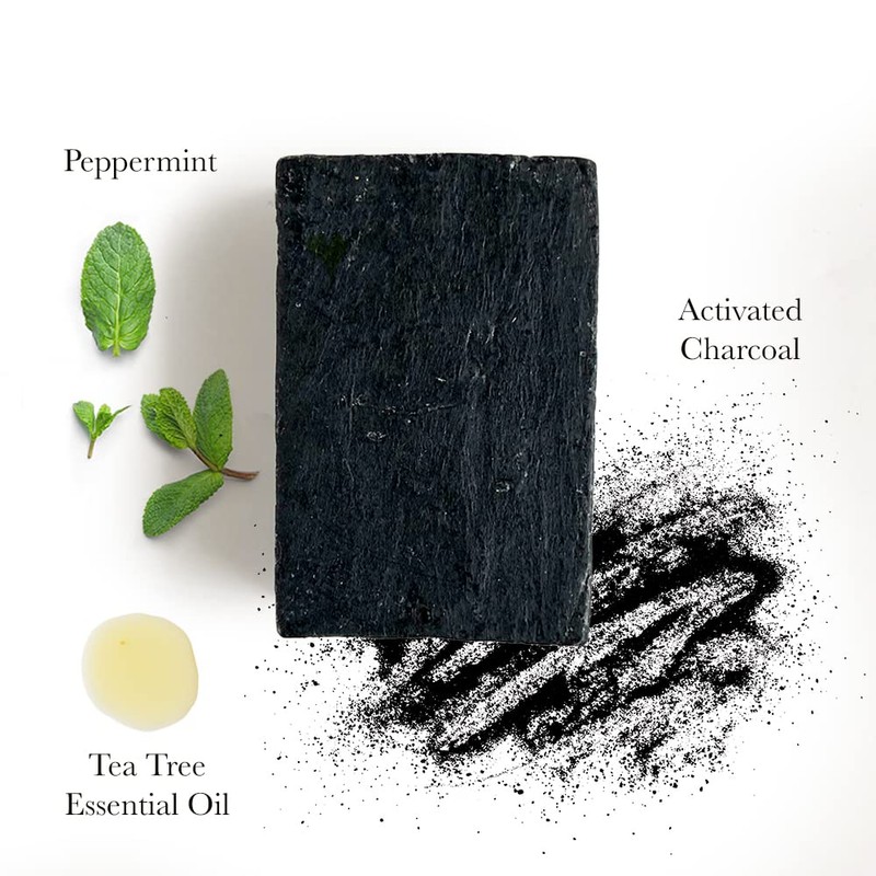 - Our Peppermint Tea Tree with Activated Charcoal Soap helps draw out dirt, oil, and impurities. It's made with peppermint and tea tree oils to reduce blemishes and redness. Can be used on face and body.