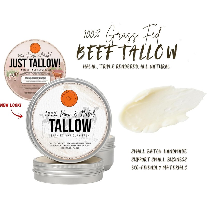 All Natural Beef Tallow Skincare Balm: Grass-Fed, Triple-Rendered Tallow Face Cream & Body Moisturizer for Dry & Sensitive Skin Hydration 70g - Barely Scented - Handmade in Canada