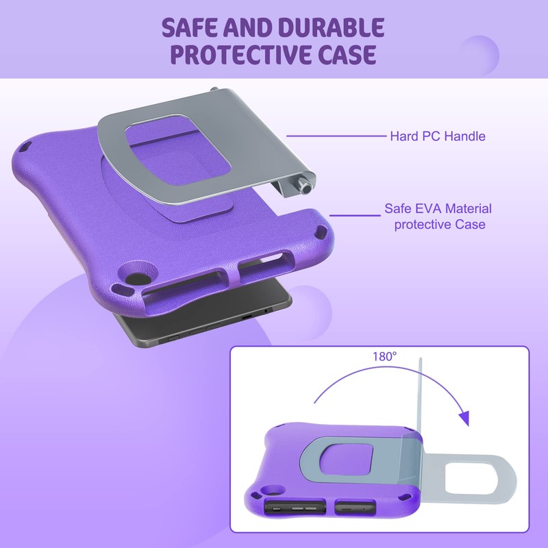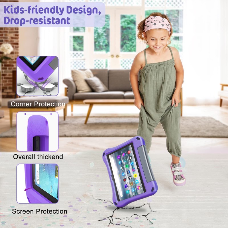 All-New H D 8 Case Kids, Tablet 8 Case for Kids(12th Generation, 2022 Release/10th Generation, 2020 Release) -Auorld Lightweight Shockproof Case with Handle for All-New 8 inch Tablet 2022 -Purple