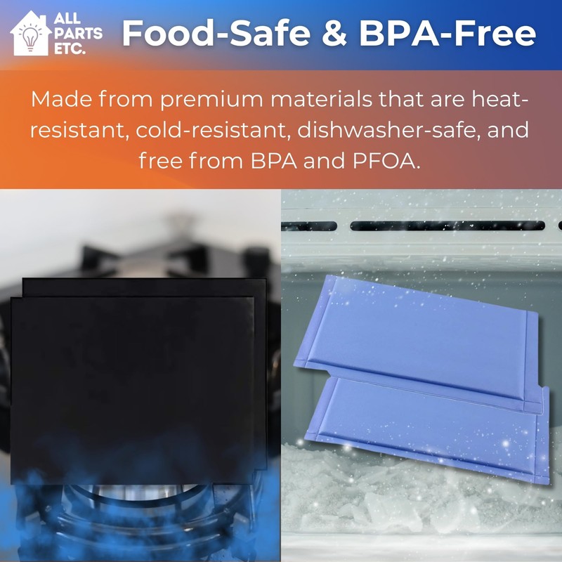 ALL PARTS ETC. 4-Pack Kitchen Liner Kit – 2 Oven Liners + 2 Freezer Anti-Frost Mats, Reusable Non-Stick, Heat & Cold Resistant, Easy to Clean for Oven Bottom & Refrigerator Shelves