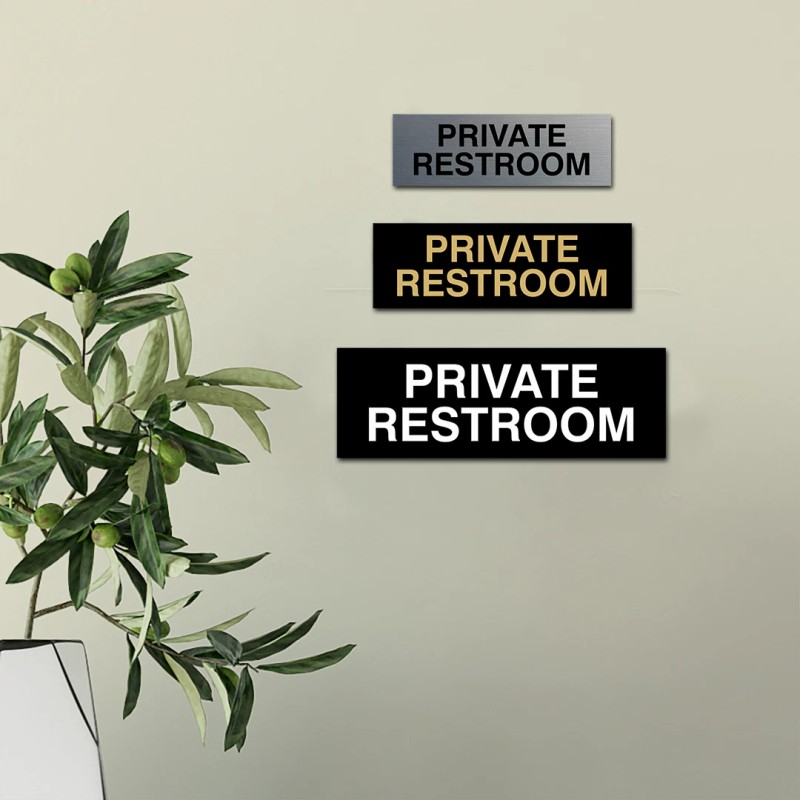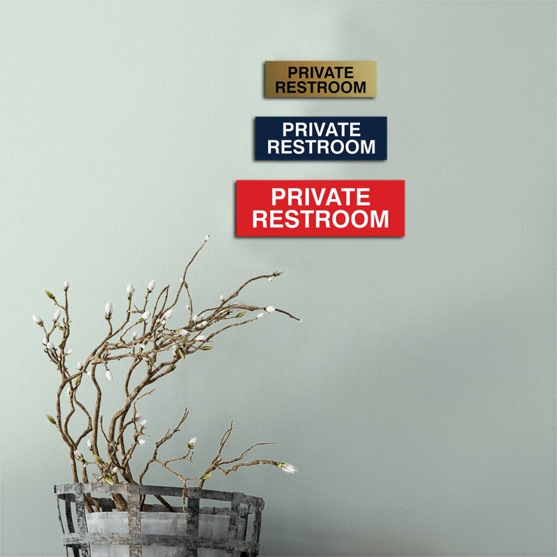 This wonderful 'Basic Private Restroom' sign can be attached to the door, wall or window of your home or business. The sign has been laser engraved so the words are all etched into the plastic. Comes in multiple colors. Our building and property signs come with adhesive two sided tape, allowing them to be attached to any flat surface. Provide clear communication to staff, guests and visitors with our easy to install signage.