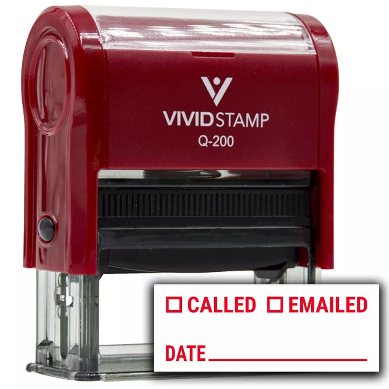 All Quality CALLED/EMAILED (w check boxes & date line) Self-Inking Rubber Stamp. Provides thousands of Impressions. Re-inkable stamp with Transparent bottom allow for precise stamp alignment. Comes in multiple colors.