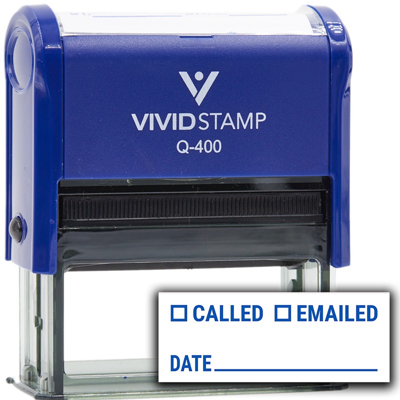 All Quality CALLED/EMAILED (w check boxes & date line) Self-Inking Rubber Stamp - Medium 9/16" x 1-1/2", Blue