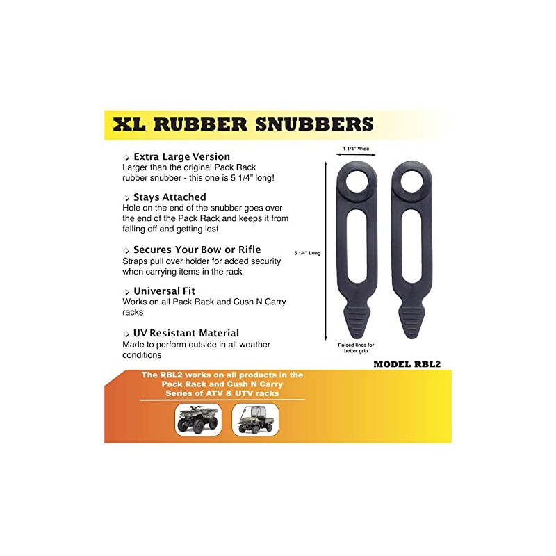 Extra rubber snubbers for use with all Pack Rack models. Attach over and hold for added security. Constructed of heavy duty, UV resistant rubber. Comes per pack.